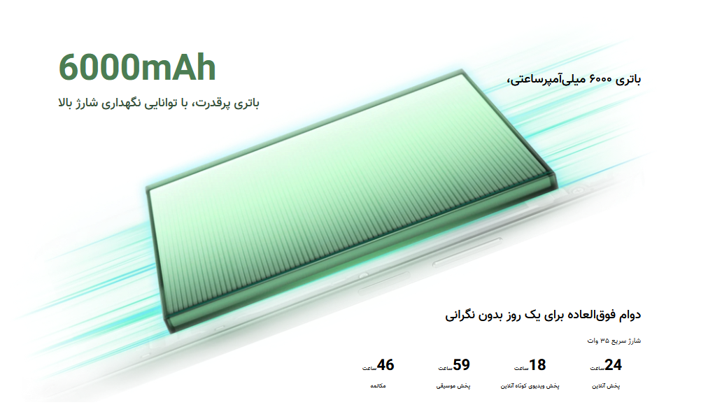 باتری ۶۰۰۰ میلیآمپرساعتی،